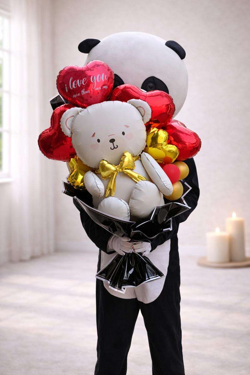 Teddy Mascot Surprise Delivery with Balloon Bouquet