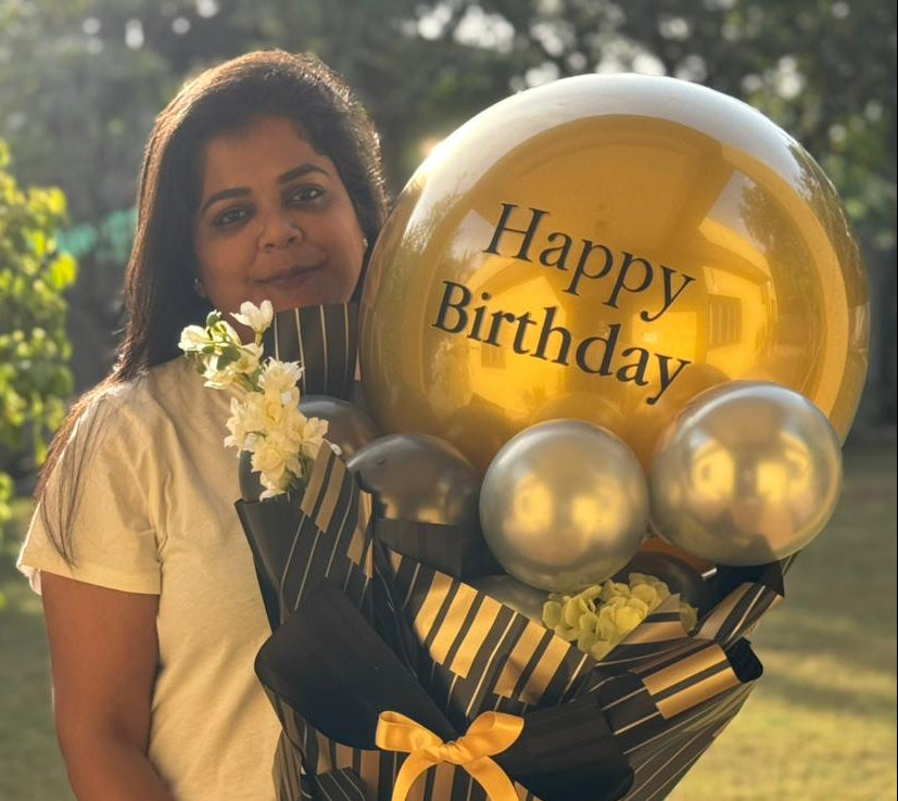 Birthday Bloom Delight – Fruit, Flower & Balloon Luxury Hamper
